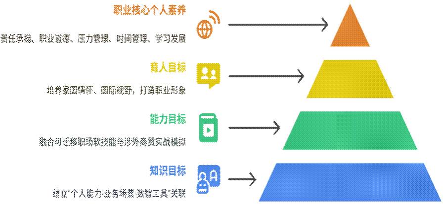 基于此,课程定位为培养学生跨境商贸实践中的关键职场素养,旨在帮助学生实现从“知”到“行”的跨越:一方面引导学生构建核心素养与业务场景之间的知识关联,另一方面推动其在模拟真实的涉外职场任务中运用并践行核心素养。