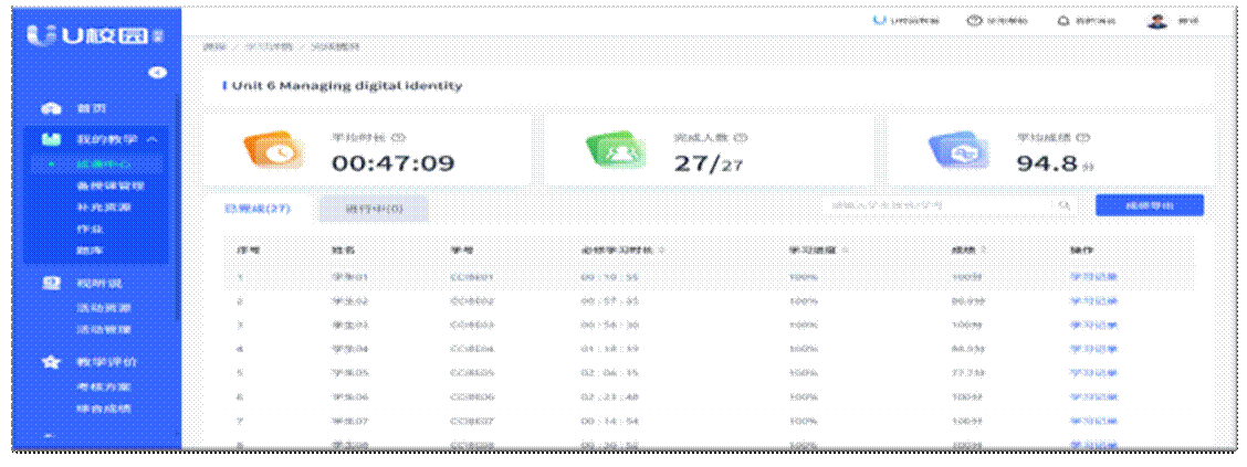依托数字教材与U校园平台的在线活动支撑,结合PBL、案例研讨与模拟实训等互动式教学方法,课堂参与度与学生学习投入度均实现显著提升。具体表现为课堂发言更踊跃、讨论更具深度,学生课前准备更为充分,课后拓展学习意愿持续增强,整体课堂氛围呈现出活跃、积极、高效的良性生态,教学实效得到全面强化。
