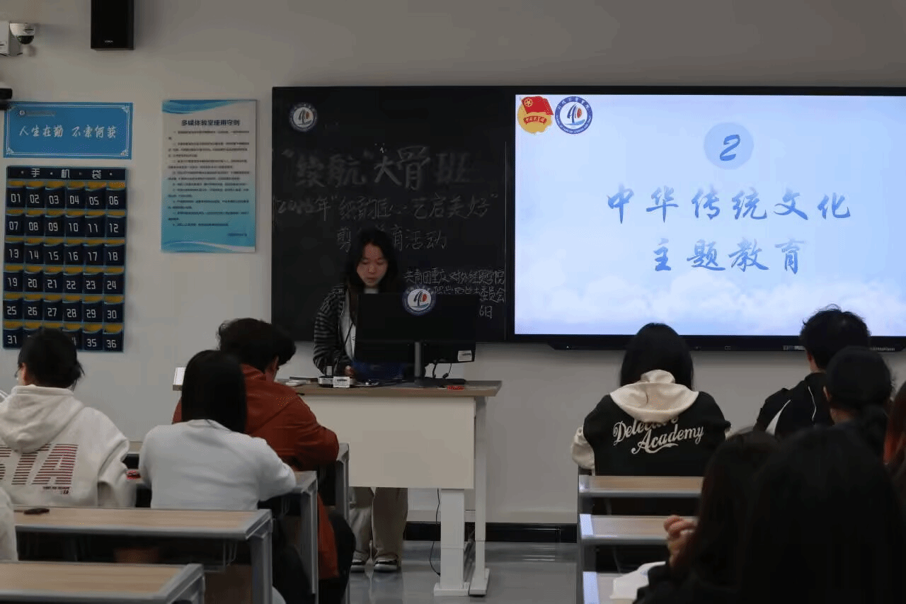随后,办公室负责人唐嘉贝同学围绕中华传统文化开展主题教育,带领学员感悟传统文化的精神内核。