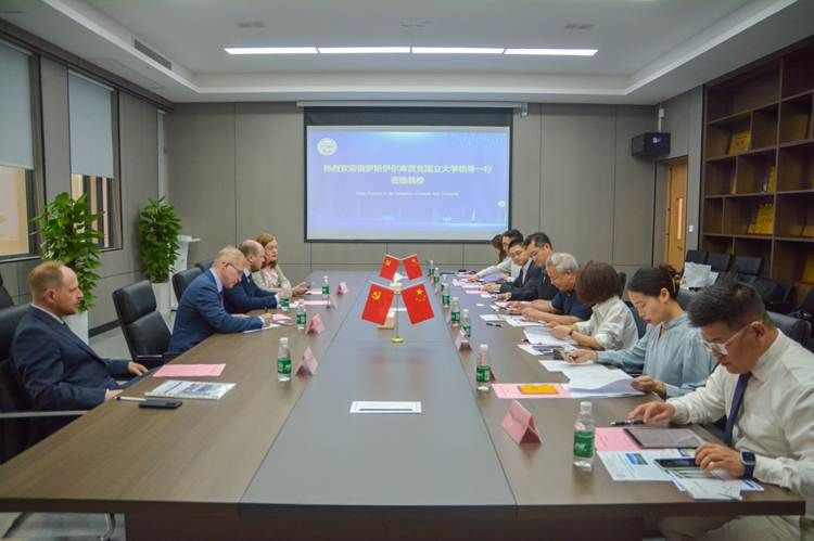 会谈过程中,双方参会代表还就研究生教育合作、学生培养、教师访学等展开探讨并达成共识,大家一致表示,将加强合作交流,共同推动双方在教育领域的发展和进步。会谈后,四位嘉宾在外语外贸学院人员陪同下参观了外语外贸学院,深入了解学院的办学情况,并对学院营造的优质育人环境给予高度评价。