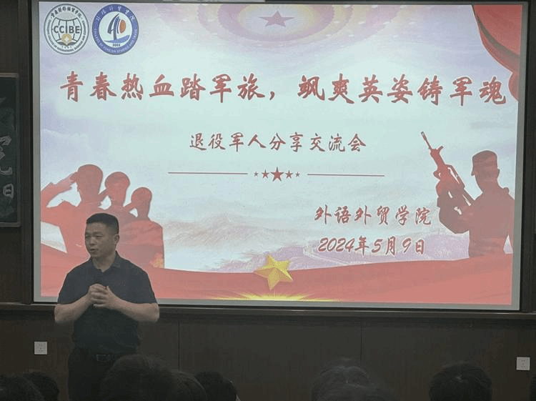 5月9日,为深入贯彻习近平新时代强军思想,深化大学生国防观念,鼓励大学生坚定理想信念、立志报国、积极行动,为中华民族伟大复兴贡献青春力量!外语外贸学院在合川B校区8407开展“青春热血踏军旅,飒爽英姿铸军魂”退役军人分享交流会。
