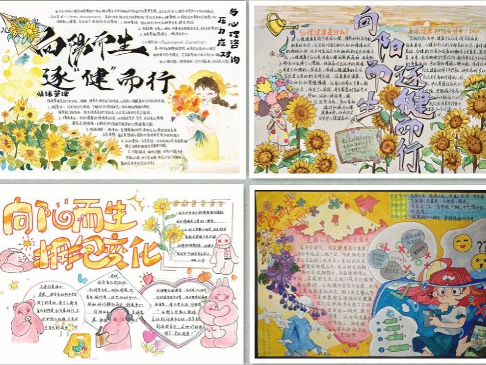 心理健康板块的作品则聚焦于情绪管理、压力应对和心理健康维护等方面。同学们通过手抄报探讨了如何识别和处理负面情绪,如焦虑、抑郁等,并介绍了心理调适技巧和心理咨询与治疗的作用。这些作品为同学们提供了宝贵的心理健康指导,帮助他们更好地应对生活中的挑战和压力。