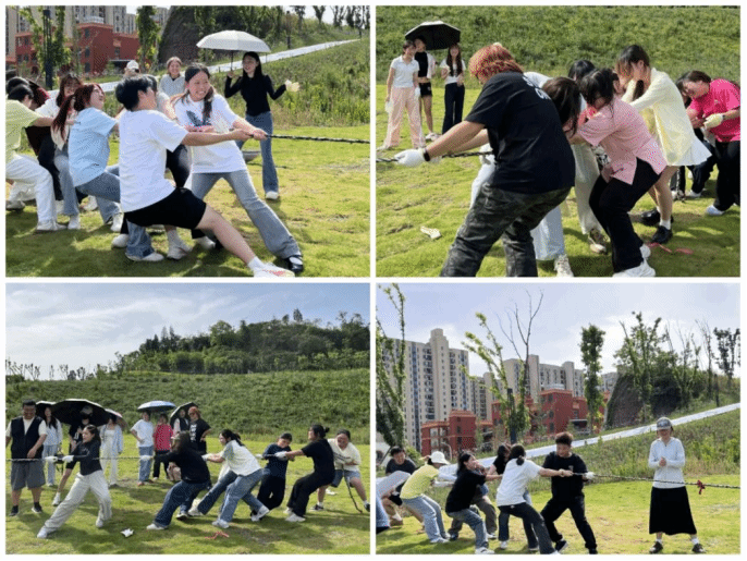 团体拔河项目将现场氛围推向高潮。四支队伍随着裁判一声哨响,两两展开激烈对决。这场力量与默契的较量,不仅展现了参赛队员的拼搏精神,更将团队协作的凝聚力展现得淋漓尽致。