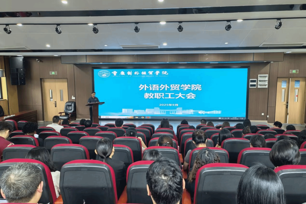 9月25日,外语外贸学院教职工大会在 B8105 顺利召开。本次会议由学院书记赵鹏主持,院长李霓主讲,全院教职工悉数参会,共同学习本科教学合格评估的工作部署和要求,提振教风,明确本科教学评估工作任务。