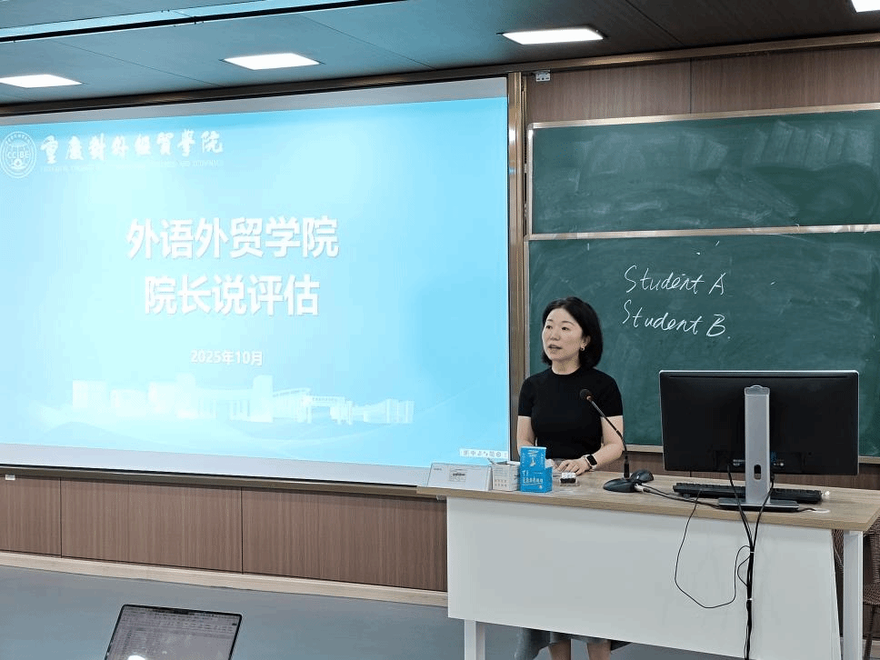 10月23日,外语外贸学院在B8207教室召开学院教职工大会。院长李霓就本科教学评估工作进行了专项部署。她强调,本科教学评估是检验学院教学质量的关键抓手,全院教职工需高度重视,全力以赴做好评估工作。