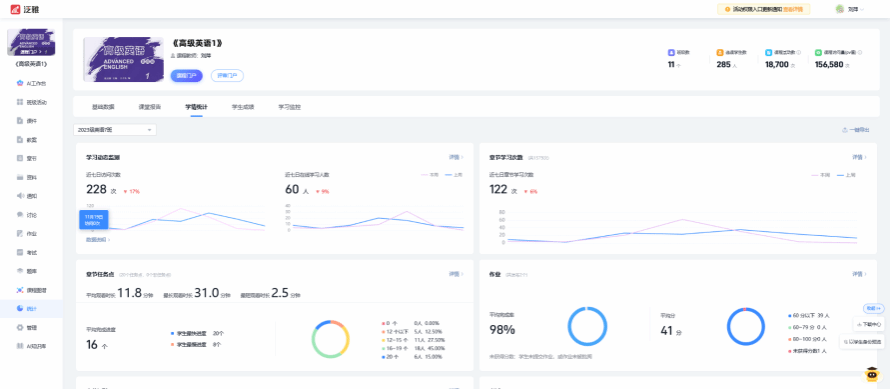 系统会综合出勤、互动次数、作业完成度、测验成绩等数据,为学生生成可视化学习报告。这不仅是对学生阶段性学习情况的“体检单”,也是教师反思教学设计、优化节奏的重要依据。