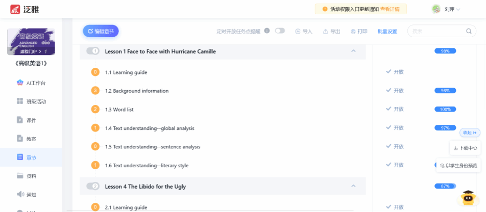 在教育数字化与人工智能深度重构学习方式的今天,外语教学正经历从“知识传授”到“能力培养”的深刻变革。《高级英语》作为英语、翻译专业大三学生的核心课程,承载着夯实语言功底、锤炼批判性思维、培育跨文化交际能力的核心使命。课程积极拥抱“数智赋能”的办学特色,将AI、大数据与智慧教学平台深度嵌入教学全过程,在破解“课时有限、任务繁重、考试压力大”等现实难题的同时,探索出一条外语类课程智慧升级的新路径。