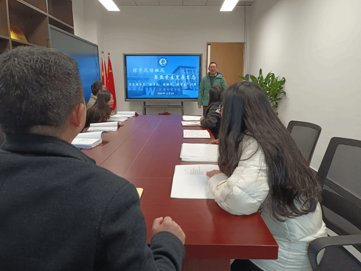 12月2日,为深入学习贯彻党的二十大和二十届二中、三中全会精神,进一步落实《普通高等学校辅导员队伍建设规定》,强化外语外贸学院辅导员对所带班级学生、班风和学风建设的全面认识,进一步在工作中以实践为抓手,提升辅导员业务水平、专业素养、综合素质,帮助辅导员群体更好地履行岗位职责,全心全意为党和国家培养新时代人才。同时,展现学院全体师生良好班风、学风与精神风貌,强化辅导员队伍职业道德规范,督促辅导员加深“四深入”工作开展,争优促先开展彼此学习。学院在6105党建活动室积极开展“说学风、说班风、说学生”比赛,全体学工人员参加。