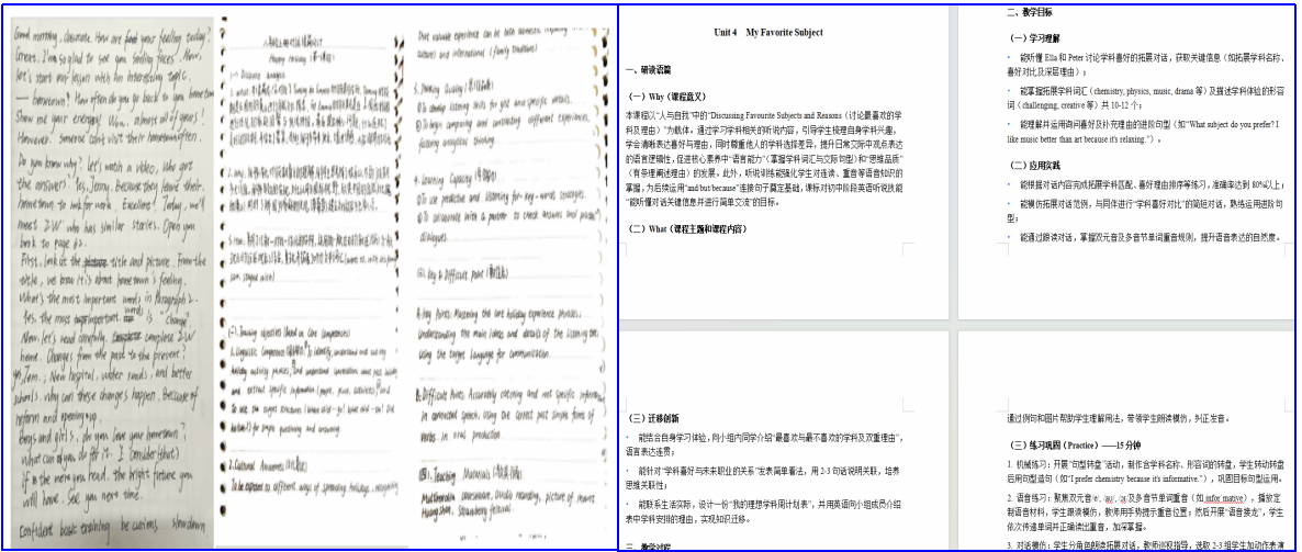 关于学生逐字稿、教学设计、教学PPT展示