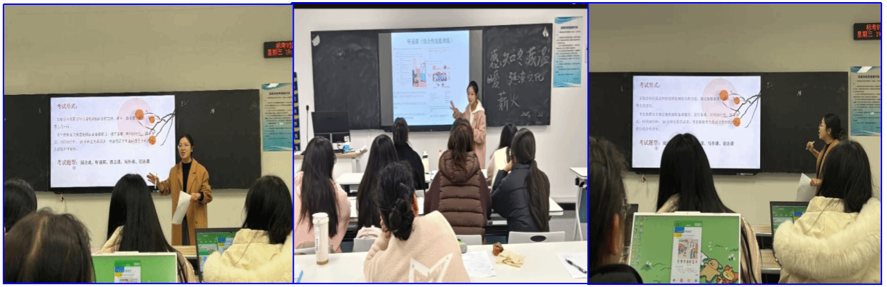 经过四周的集中学习与试讲训练,学生在教学设计、试讲实施与临场应变等教学技能均取得显著提升。参与学生普遍反馈,工作坊有效深化了对人教版教材与教资面试考纲的认知,强化了“教学评一体化”与核心素养渗透的教学理念,同时切实提升了试讲方案设计的专业性、逐字稿撰写的规范性与实战展示的自信心,为后续英语教资面试及走上讲台奠定了坚实基础。