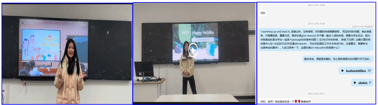 学生阅读课、听说课试讲视频及教师反馈