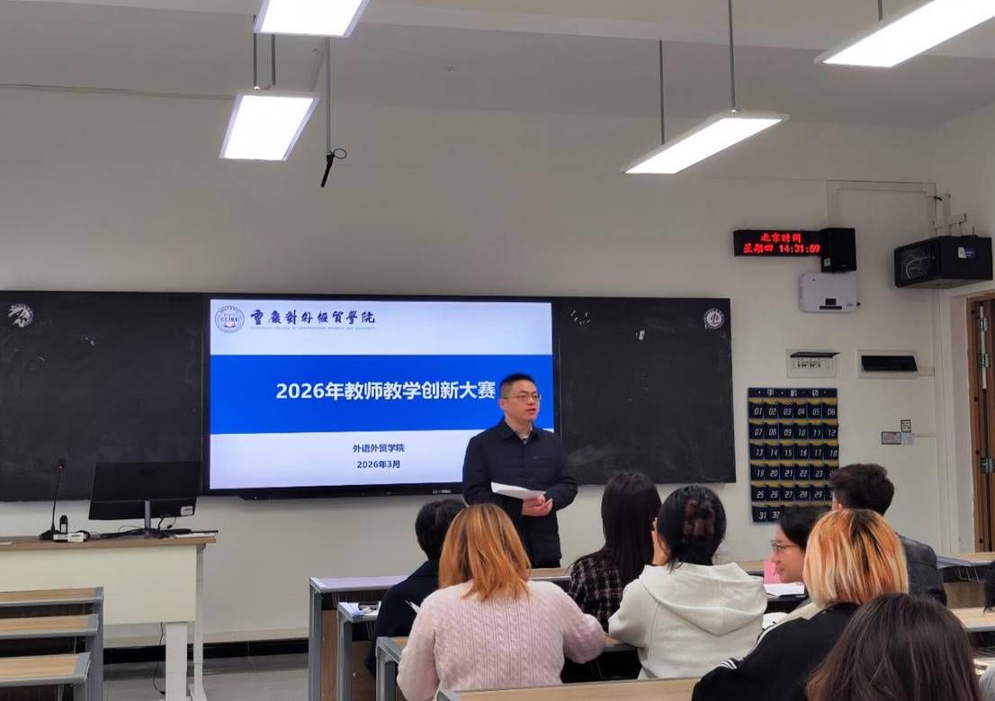 3月5日,为深化课堂教学改革,提升教师教学创新能力,扎实做好教师教学创新大赛备赛工作,重庆对外经贸学院外语外贸学院在B6207教室举办“2026年教师教学创新大赛”。