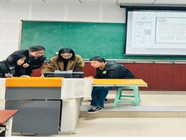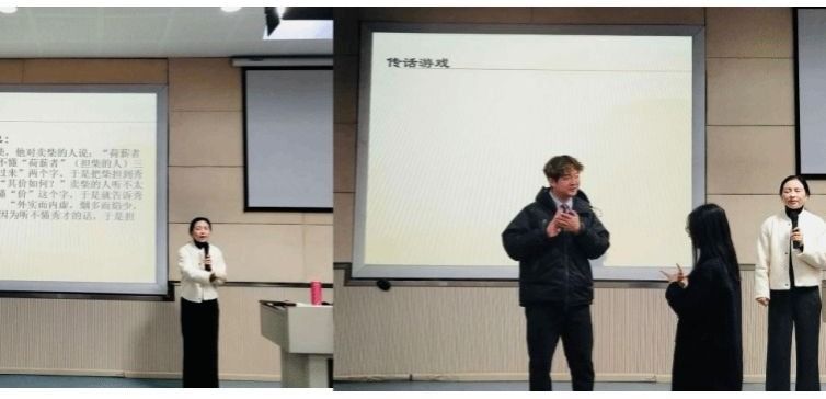 11月27日上午,学员分组进行英语教学实作训练,602和605教室分别推选教师授课,西南大学副教授曹宗清和杨琴点评。吴文韬老师讲解“坚持以人民为中心的发展思想”单元,注重翻译策略;杨韵玄老师以生活实例引出“数字服务贸易”课程,分析其模式、特征及作用。
