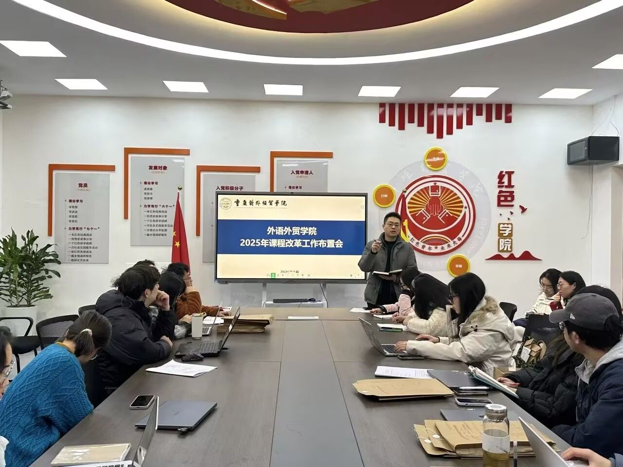 1月15日,为全力支撑学校“外语+经贸”特色学科群发展,开发具有实践性、实用性的个性化专业课程,外语外贸学院在B6105召开了2025年课程改革工作布置会。