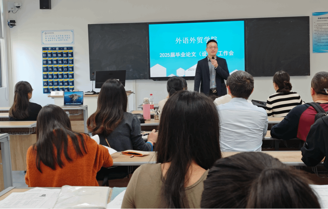 4月10日,为加强毕业论文(设计)管理,提升论文质量,外语外贸学院在B校区6214召开2025届毕业论文(设计)审查专项会议。本次会议由副院长吴耀熙主持,学院院长、论文负责人及论文审查组成员齐聚一堂,共同聚焦毕业论文质量提升工作。