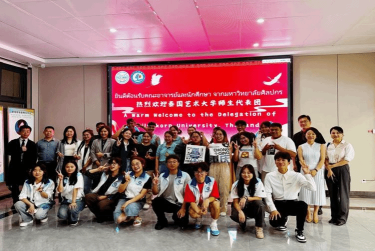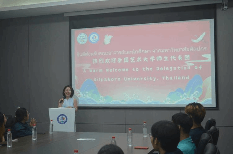 5月8,为促进两国民间友好及两国文化、两校教育理念的沟通交流,我校在合川B校区B6103会议室举办了开学典礼。泰国艺术大学访学团师生、我校外语外贸学院院长李霓、党总支书记赵鹏、副院长吴耀熙、国际学院刘用处长、外事管理科科长张燕、邹其彦老师以及学生志愿者共同出席了此次活动。
