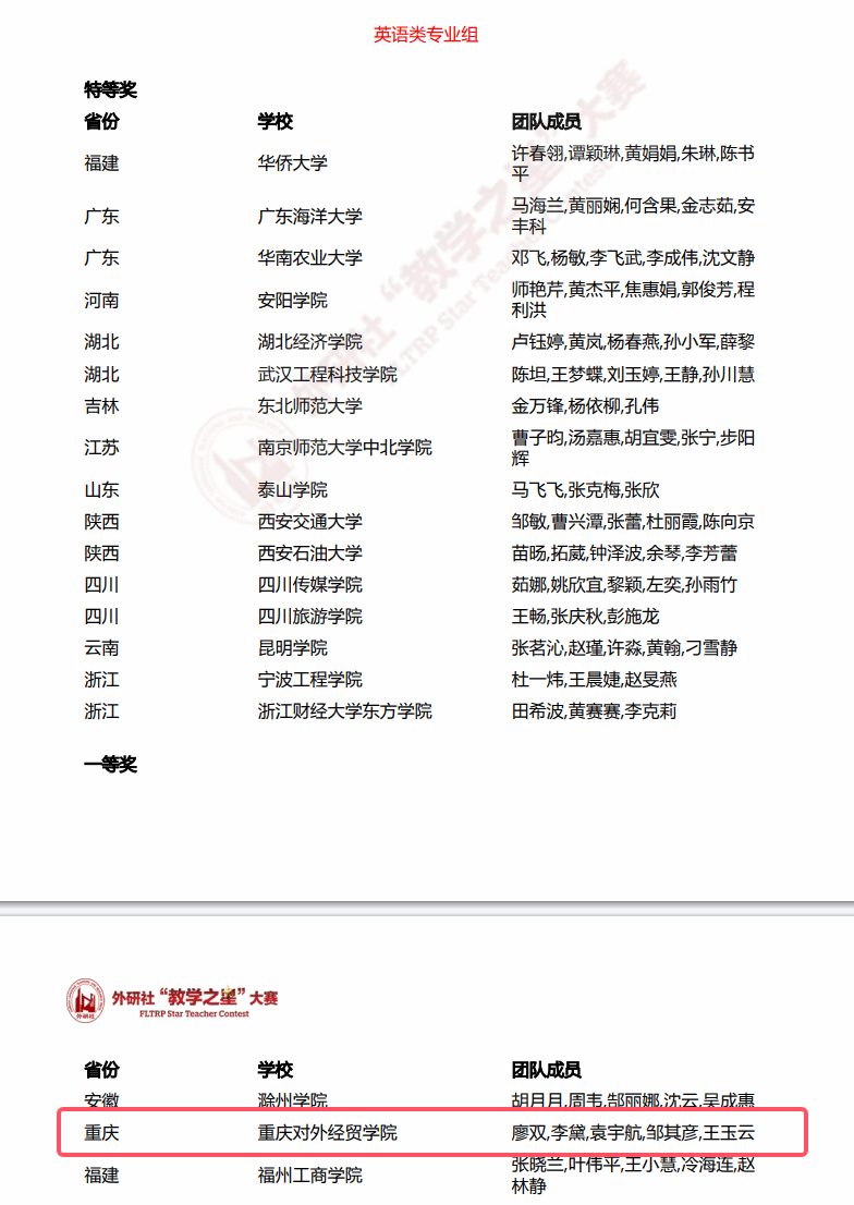 在2025年外研社“教学之星”大赛(本科英语组)全国复赛中,我院教师团队凭借扎实的专业素养、前沿的教学理念和创新的教学设计,从众多参赛队伍中脱颖而出,一举斩获英语类专业组一等奖。