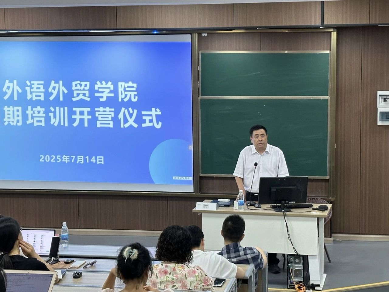 7月14日,外语外贸学院专任教师暑期培训开营仪式在B校区8207教室举行。副校长周明星、学院院长李霓及全体专任教师参会,仪式由副院长吴耀熙主持。