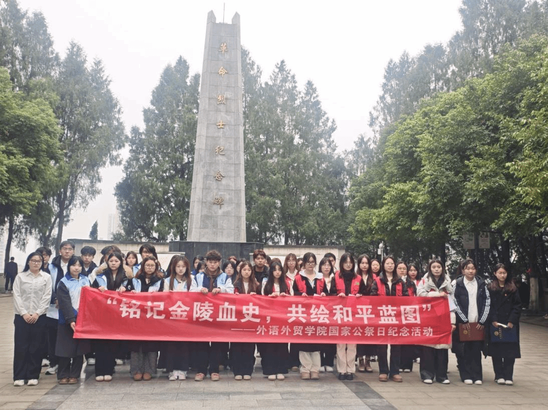 12月12日,为铭记历史、缅怀先烈,传承和弘扬爱国主义精神,引导外院学子在活动中厚植家国情怀,筑牢青年一代民族记忆、凝聚学生爱国共识,重庆对外经贸学院外语外贸学院国家公祭日主题教育活动在合川人民公园成功开展。