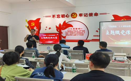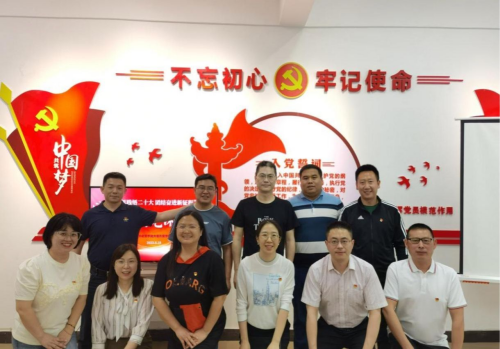 评委、选手合影六位支部书记围绕党的二十大精神,紧扣“学思践悟二十大,团结奋斗新征程”主题,以PPT、视频等多种形式,将党的理论知识与生活语言相结合,为大家带来了一堂精彩的微党课。评委从党课主题与内容、主讲人现场表现等方面作了具体点评,提出了宝贵意见。最终,朱斌谊同志获一等奖,吴耀熙、杨照同志获得二等奖,代光霞、周龙中、干昭君同志获得三等奖。