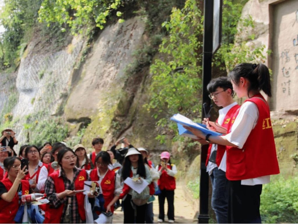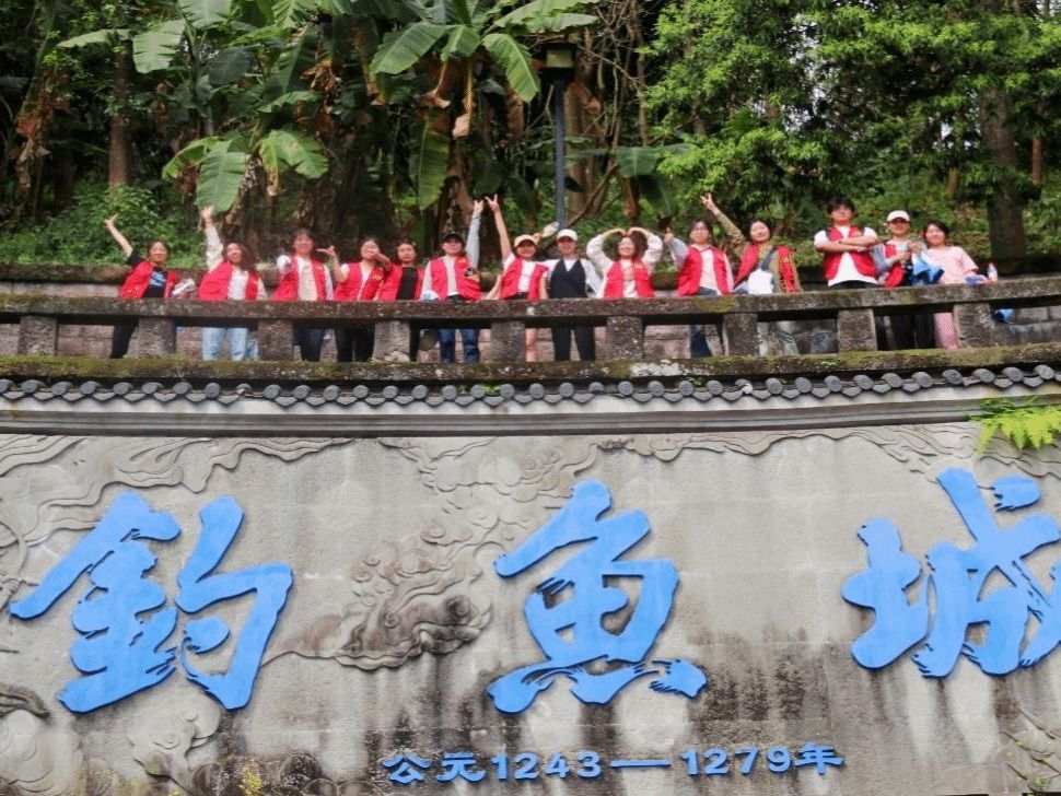 最后抵达了著名的钓鱼台,站在这里,同学们可以俯瞰整个钓鱼城,感受它的险峻与壮美,而传说中的“水军之城”就在其脚下,这里还曾是南宋水军的重要基地,为抗击蒙古大军提供了有力支持。两位主持人对钓鱼城的背景和由来进行细致讲解,使同学们更加了解钓鱼城的历史渊源与文化价值,感受到了这座建筑背后的文化底蕴和精神力量,极大地拓展了同学们对合川钓鱼城的文化知识。