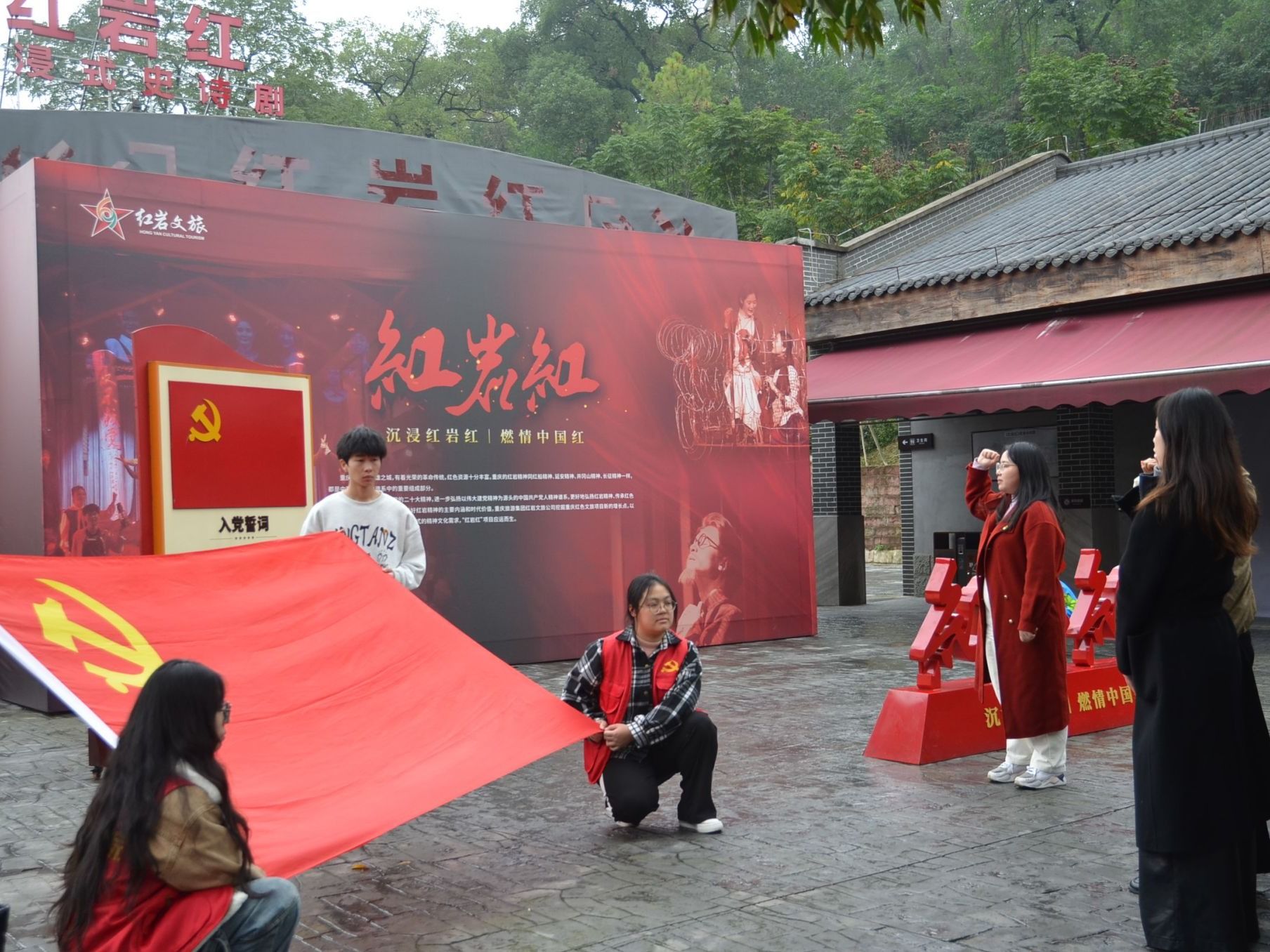 重庆渣滓洞,这座著名的革命教育圣地,承载着无数革命先烈坚贞不屈的伟大精神,是一部鲜活且厚重的红色文化教科书。活动当天,党员同志们满怀崇敬与激情抵达渣滓洞。“一个有希望的民族,不能没有英雄。”怀着对英雄的敬仰与对历史的敬畏,党员同志们首先步入红岩红沉浸式剧场,观赏《红岩红》舞台剧,借此深入探寻红岩精神的深邃内涵,铭记先辈们为革命事业所付出的巨大牺牲。演出谢幕之际,在红岩红剧院广场上,黄蓉同志庄重引领全体党员,面向鲜艳夺目的党旗,高高举起右拳,庄严地重温入党誓词。紧接着,党员们在讲解员的引导下,参观了渣滓洞的外院、牢房、审讯室以及刑讯洞等场所,深入了解革命先烈们在狱中遭受的惨无人道的迫害和英勇无畏斗争事迹。活动最后,红色学院的青年学子们齐聚渣滓洞门前,齐声朗诵《黑牢诗篇》第一章,激昂澎湃的朗诵声,既是对那段悲壮历史的深情回溯与见证,也是对红岩精神的生动诠释与礼赞。