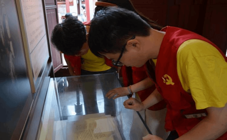 团队成员观看陈列资料