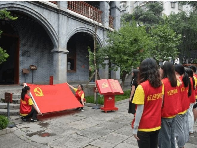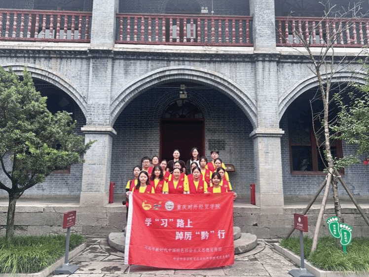 7月13日,重庆对外经贸学院“学‘习’路上,踔厉‘黔’”行习近平新时代中国特色社会主义思想宣传团在遵义红花岗区毛泽东、张闻天、王稼祥旧址,开展“红城游故居,热血承使命”特色主题党日活动,激发党员传承红色基因,凝聚奋斗力量。