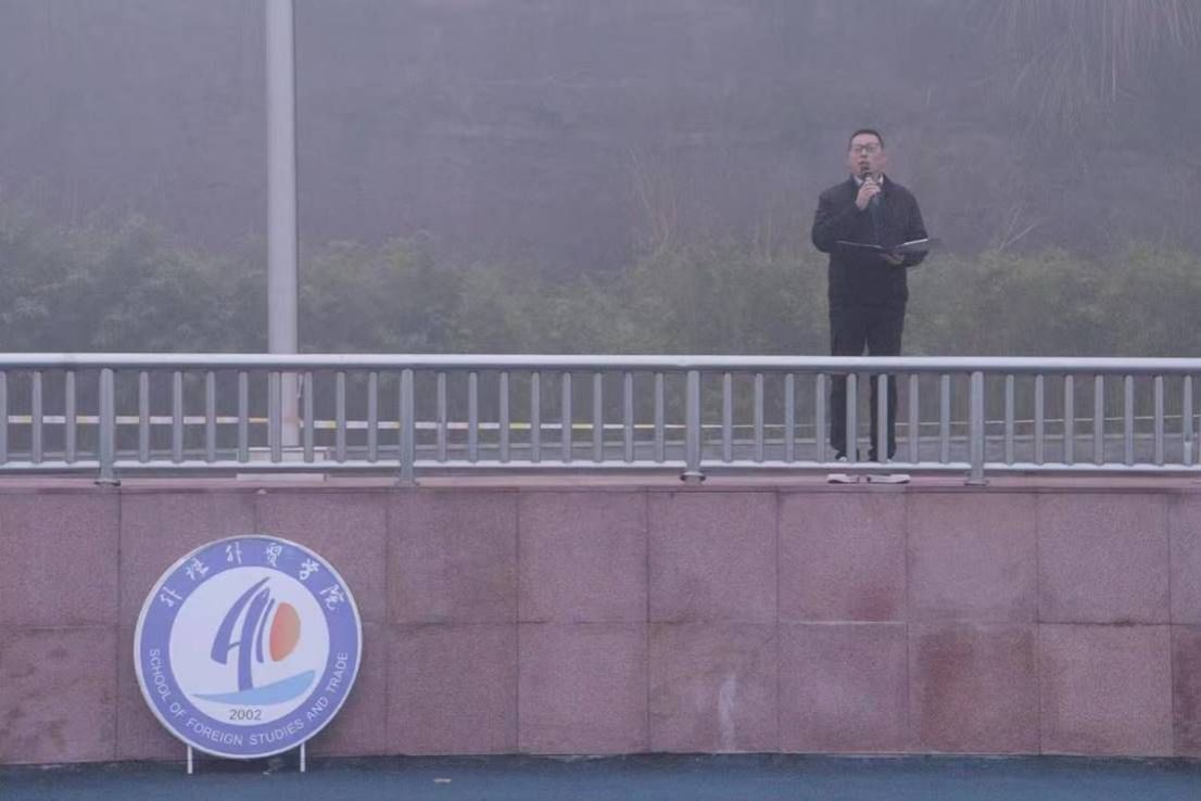 12月8日,为帮助外院学子厚植家国情怀、勇担时代使命,引导大家将青春理想融入强国建设的宏伟蓝图,让青年一代在爱国奋斗中绽放绚丽光彩,正确树立理想,锚定人生前进方向,增强自身本领以寻得更好的成长平台,重庆对外经贸学院外语外贸学院第十四周升旗仪式在B校区足球场成功举办。