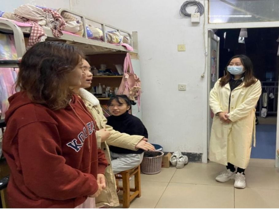 自我校落实防疫政策,严格贯彻落实校园封闭管理措施以来,全体师生以实际行动积极响应着“疫情就是命令,防控就是责任”的号召,以责任和担当扛起这座大山,以实际行动全释她们的初心和使命。2022年11月27、28日晚上外语外贸学院全体政工队伍再次深入学生寝室,了解严控校门后学生们的学习和生活状况。