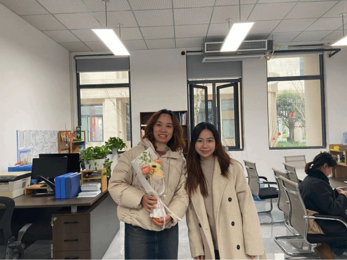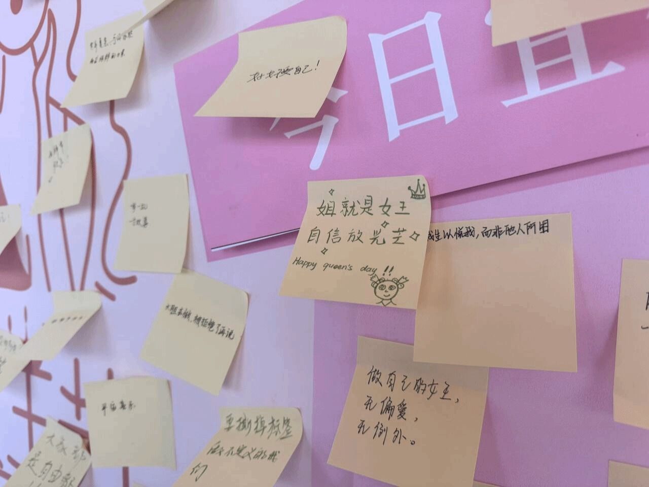 活动现场精心布置祝福展板,悬挂中医健康知识,设置知识问答环节,准备了中医知识卡片贴纸、秋梨膏糖等小礼物。此外,还提供了便利贴让参与活动的老师和同学写下祝福,粘贴在祝福展板上。活动现场气氛热烈,外院女生积极参与。通过中医健康知识问答,以有趣的问答互动方式在轻松愉快的氛围中进行,不仅让外院女生学习到中医的基础知识,还有利于身心和谐。祝福展板上贴满了“祝福”,每一张便利贴都承载着温暖的心意和美好的祝愿。黄色的贴纸、缤纷的气球和香甜的鲜花,将整个展板装点得格外温馨。最后,团总支学生会成员为外院办公室女教师们送上了精心挑选的鲜花,致以最真挚的节日问候和祝福。