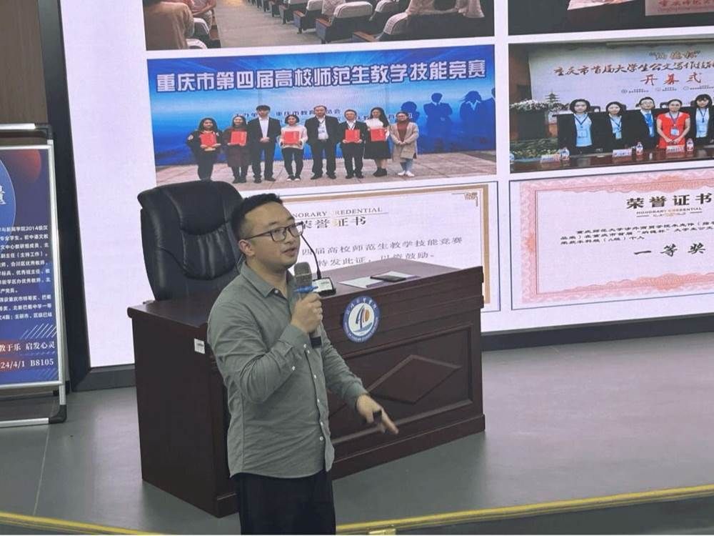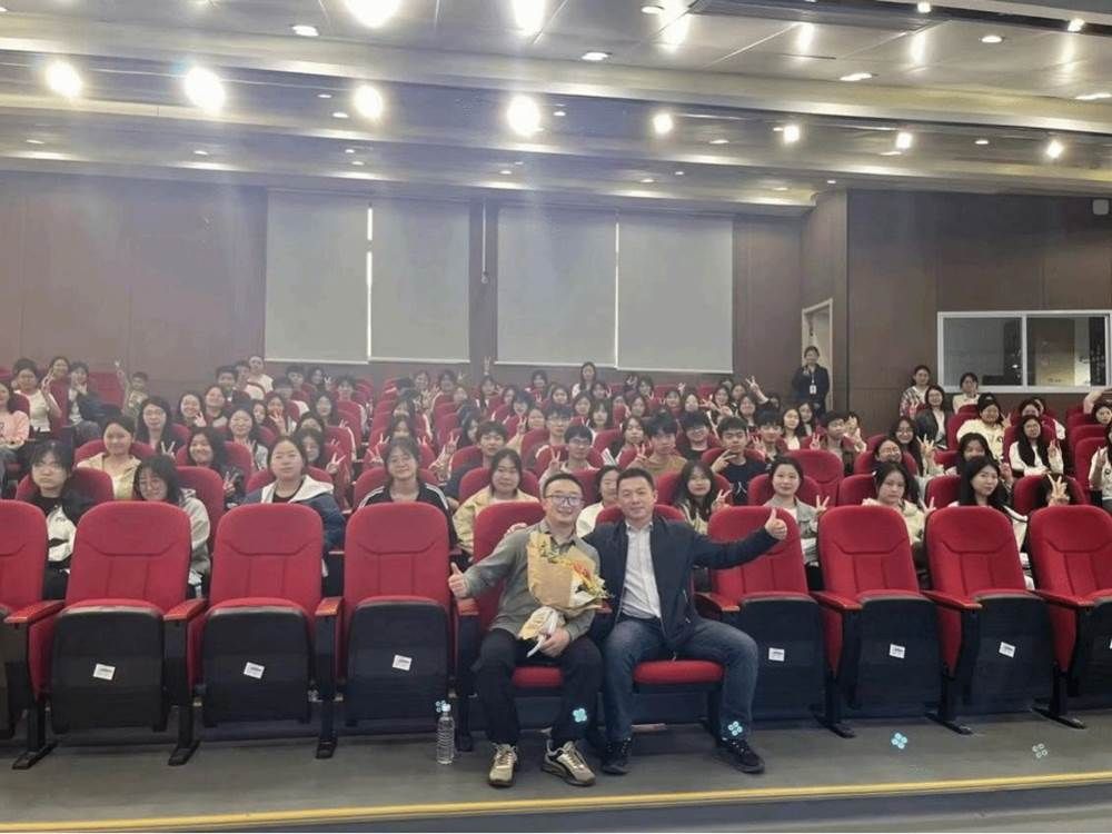 由主持人宣布分享交流会开始后,朱先伟老师以“师范生的自我修炼”为主题,分别从“我与涉外,我与北巴”、师范生的成长现实、师范生的两大阵地以及师范生的专业追求四个部分与到场同学进行分享交流。分享交流活动过程中,朱先伟老师风趣幽默,交流形式独特新颖,通过老师提问学生答、学生提问老师解答等环节吸引同学们注意力,让更多的同学参与其中。其中,最让同学们感受颇深的是朱先伟老师提到的“跨出第一步,就已经成功了百分之九十。”活动最后,由工作人员为朱先伟老师献上鲜花以表敬意与感激并邀请朱先伟老师与党总支书记赵鹏以及各位参会同学合影留念。