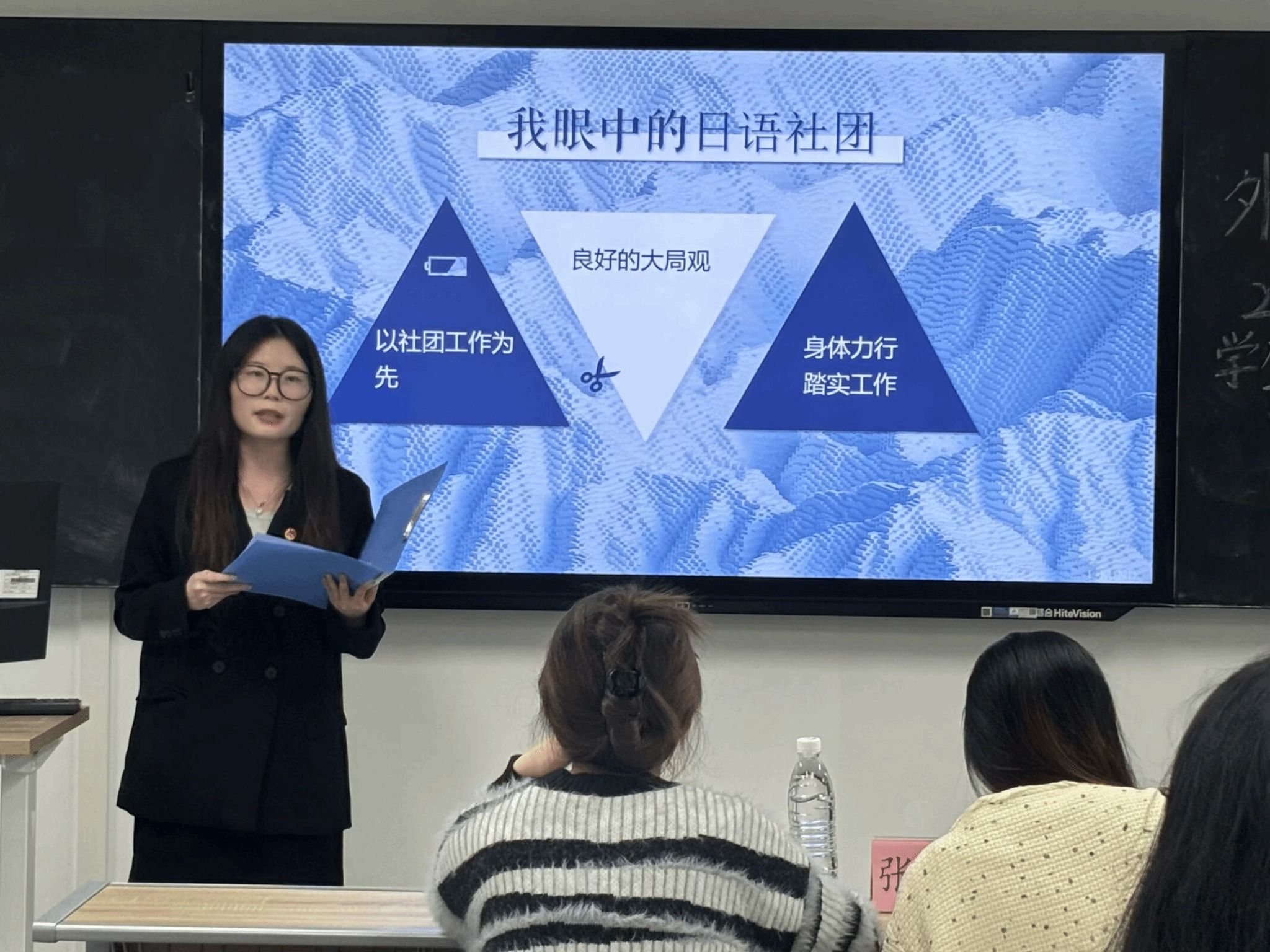 此次活动是为了给社团带来新的理念和思路,开拓更广阔的发展空间,激发社团成员的积极性和创造力,使社团在校园文化建设中发挥更大的作用。在大会现场,主持人致开幕词后,全体齐唱中国共青团团歌。接着,各位社长候选人发表竞职演讲,他们从自我介绍、社团发展、竞争优势及未来规划与憧憬等多方面进行阐述。在答辩环节,各位候选人对于学生评委提出的问题冷静思考,沉着应对,针对问题提出了自己的想法。整个过程,各候选人逻辑清晰、精神饱满,情感充沛,充分展现了各位候选人卓越的自我修养与务实的工作态度。