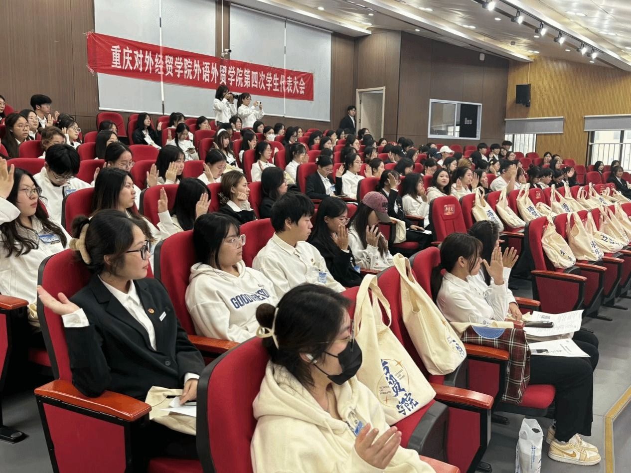 11月8日,重庆对外经贸学院外语外贸学院第四次学生代表大会在合川B校区8105开展。出席本次大会的人员有:外语外贸学院党总支书记赵鹏、团总支书记熊有竹、办公室主任黄蓉、校团委干事肖熙铭、校学生会主席团成员、辅导员老师们及各位学生代表。