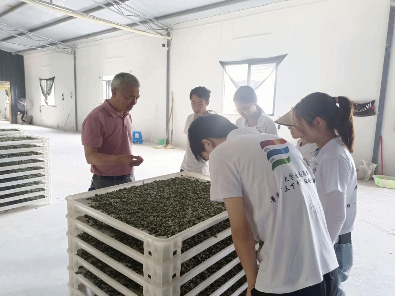 7月16日,在养蚕专家专技六级高级农艺师卢世宽的带领下,重庆对外经贸学院“天生云阳文脉传,与凤同行绘新篇”基层服务践行团,为深入探索桑蚕这一古老而珍贵的农业文化遗产,感受其与现代科技融合下的新生机及对乡村振兴战略的积极贡献,分别前往重庆市云阳县凤鸣镇的双桂村、平顶村和太地村进行实地学习参观。在养蚕基地,践行团成员通过采摘桑叶、参观养蚕基地和了解蚕吐丝成茧的全过程等,深刻感受到养蚕的艰辛和生命的魅力。