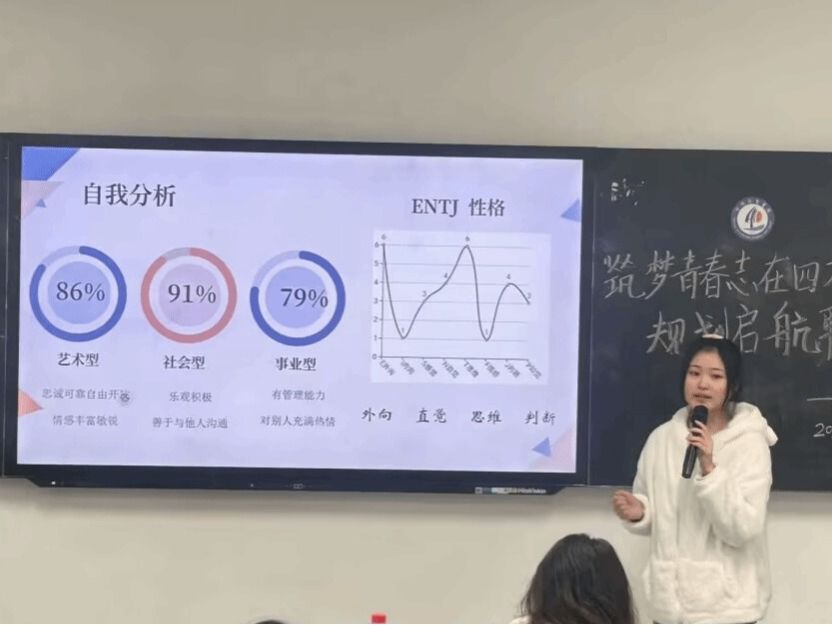 活动现场,主持人致开幕词后,选手们依次登台依照自己的PPT详细阐述了自己的职业目标、发展路径以及应对困难的策略。随后,评委老师认真听取每位选手的陈述,并在提问环节中提出问题。同时,面对评委的提问,选手们沉着应对,展现出了自己对职业规划的独到见解和深刻理解。比赛最后,评委老师与所有的参赛选手进行合影留念。
