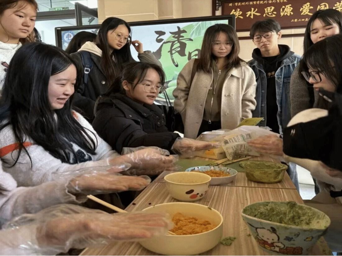 4月2日,为了加强外语外贸学院同学们对清明习俗的了解,丰富对清明传统文化的体验,外语外贸学院团总支志工部开展“青团承古,文化传情”青团手工制作活动,希望通过此活动,能够充分调动同学们了解传统、体验传统。悠悠艾草香,品食山野色。青团不仅是我国可口的特色美食,更包含了特定的节日内涵,人们习惯在清明时节踏青祭祖,通过青团来寄托对故人的思念。