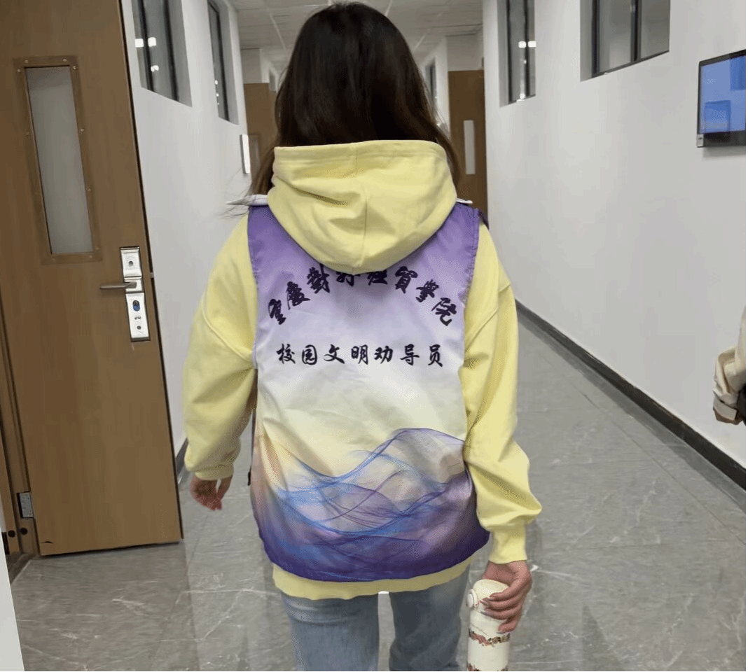4月21日,重庆对外经贸学院外语外贸学院团总支学生会权益部开展校园文明督导活动。本次校园文明督导队活动以“文明接力,风尚传承”为主题,在延续“柔性劝导”核心理念的基础上,创新推出“文明使者结对”新举措。摒弃传统孤立的督导模式,通过志愿者与同学“一对一”结对,让文明意识以更亲密、更深入的方式融入学生日常。活动旨在打造“互助互学、携手共进”的文明培育平台,使督导工作不仅是纠正违规,更是在关爱与引导中帮助同学成长,推动校园从“局部文明”迈向“全域文明”,营造温馨、和谐、文明的校园大环境。