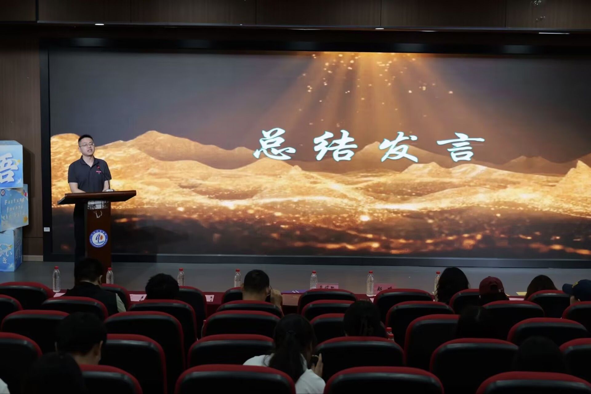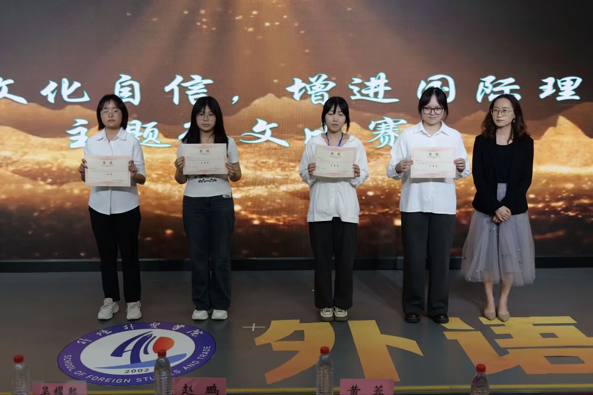 闭幕式以优秀获奖选手的精彩表演、精彩视频合集带领全场师生回顾了本届艺术节的精彩瞬间:从“硬笔争锋,粉笔竞彩”书写比赛中选手们专注的神情,到“绘声绘色,译韵传情”写译比赛中的妙笔生花;从“破界创新,领航未来”产品发布会的创意迸发,到“和风传声,语动未来”日语比赛的风采。每一个镜头都记录着同学们在艺术节中的成长与收获。精彩的节目过后,学院领导及老师们依次为在各项赛事中表现优异的选手们颁奖,当获奖代表登上领奖台时,全场响起经久不息的掌声。