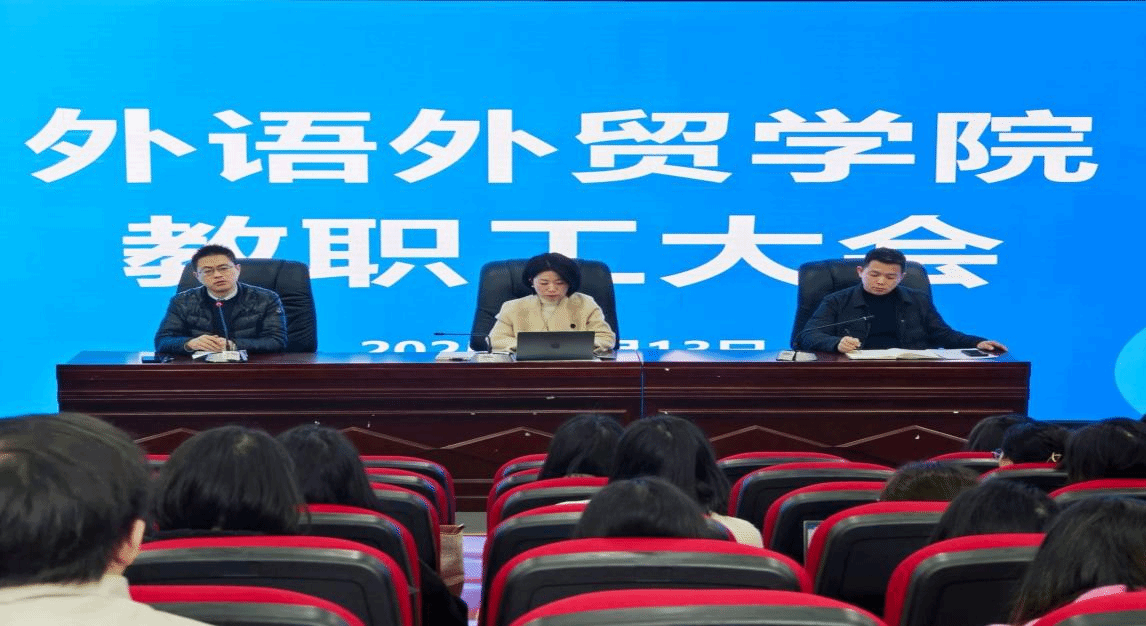 3月13日、外語外貿学院の教職員大会はB8105会議室で開催された。大会は審査準備、教育改善及び安全対策などの重点業務の展開を中心に展開した。会議は趙鵬書記が司会を務め、李霓院長と呉耀熙副院長がそれぞれ担当する分野における具体的な要求と手配を指示した。