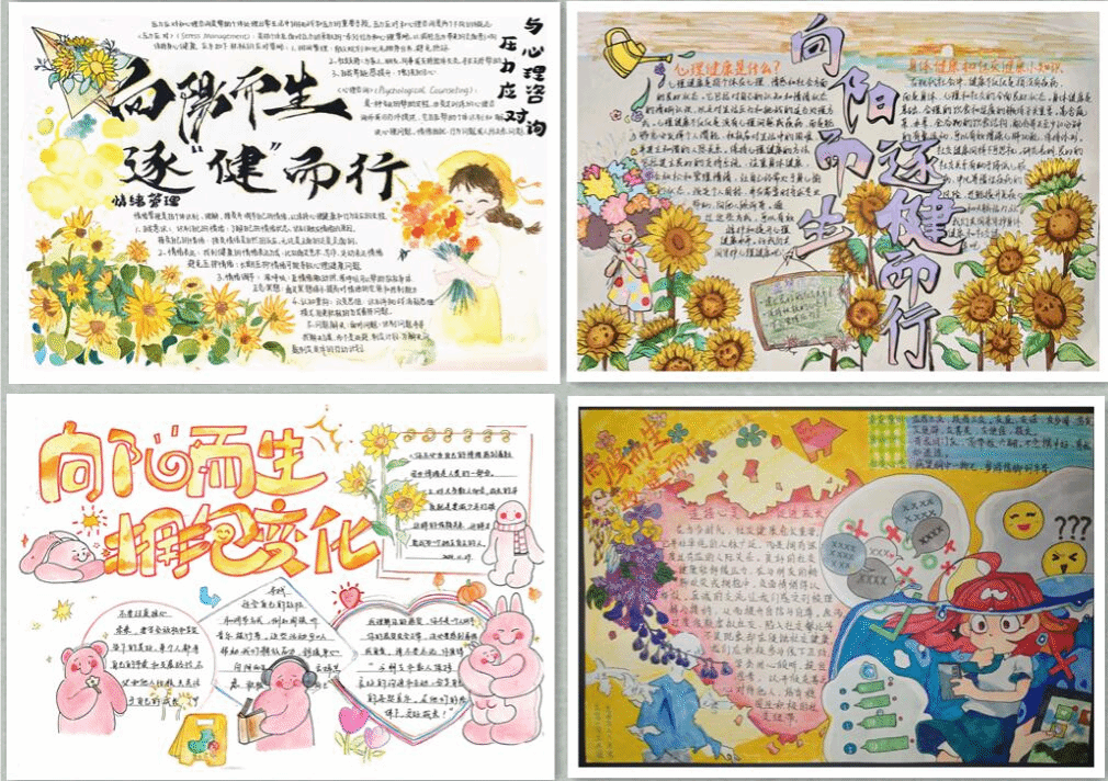 心健康のカテゴリーでは、出品作品は感情のコントロールやストレス対処法、心の健康維持に焦点を当てた。学生たちは手書きの新聞を通じて、不安や抑うつなどのネガティブな感情をどう認識し処理するかと検討するとともに、心理調整のテクニック、カウンセリングの役割も紹介した。これらの作品は、学生たちに貴重なメンタルヘルスガイドを提供し、生活上の困りやストレスによりよく効果的に対処できるよう支援した。